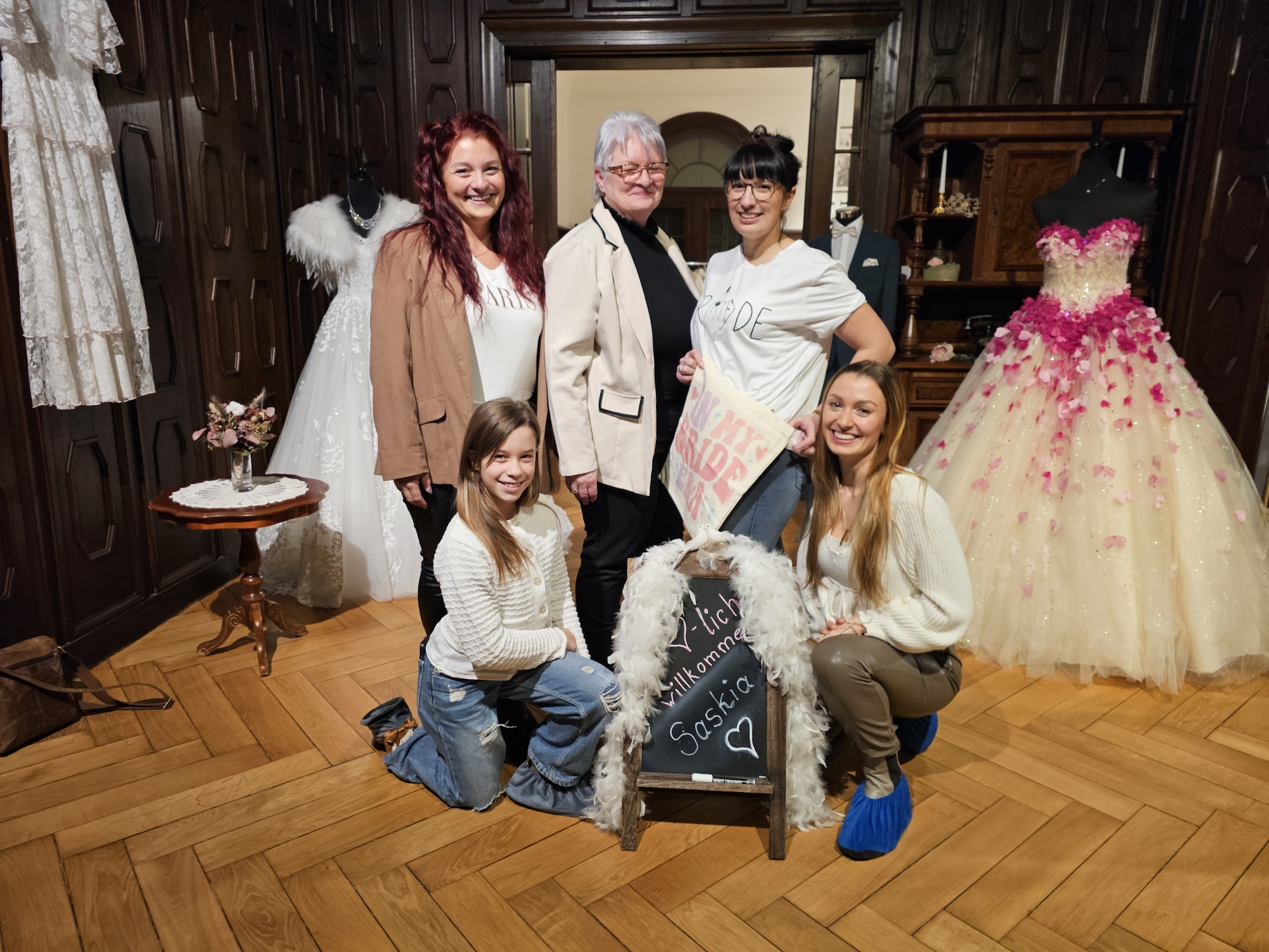 "So eine Brautkleidberatung findet man nicht noch einmal. Vergesst Tüll und Tränen im „Robe de marièe“ findet ihr ein Komplettangebot der Sonderklasse. Vom persönlichen Willkommensschild, über kulinarische Genüsse und Gesangseinlagen, bis hin zur über aus kompetenten Beratung, verbunden mit einem wunderschönen Ambiente, bleiben keine Wünsche offen. Wir waren zwar nur die Begleiterinnen der Braut, aber auch für uns wird der Nachmittag unvergessen und in wunderschöner Erinnerung bleiben. Wir haben uns gefühlt, als würden wir bei langen bekannten Freunden ein Brautkleid kaufen, so liebevoll und offen wurde mit allen umgegangen. Nochmal vielen vielen lieben Dank an euch!!! Mit der nächsten Braut kommen wir wieder zu euch :)" Annett und Anja
